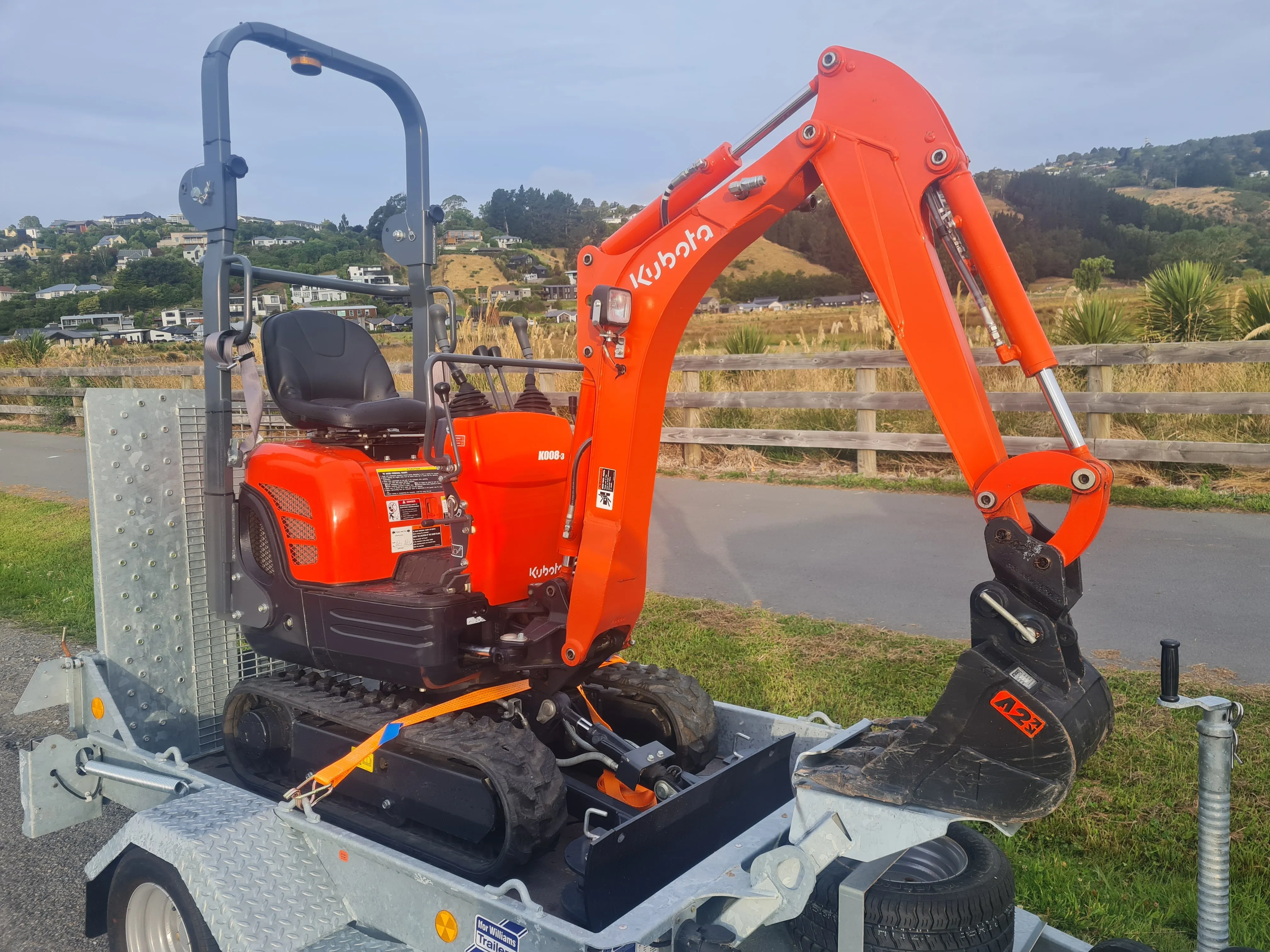 The Kubota K008-3 is a compact yet powerful 1-tonne digger, perfect for tight spaces with tracks that can be pulled in to create a width of 700mm.